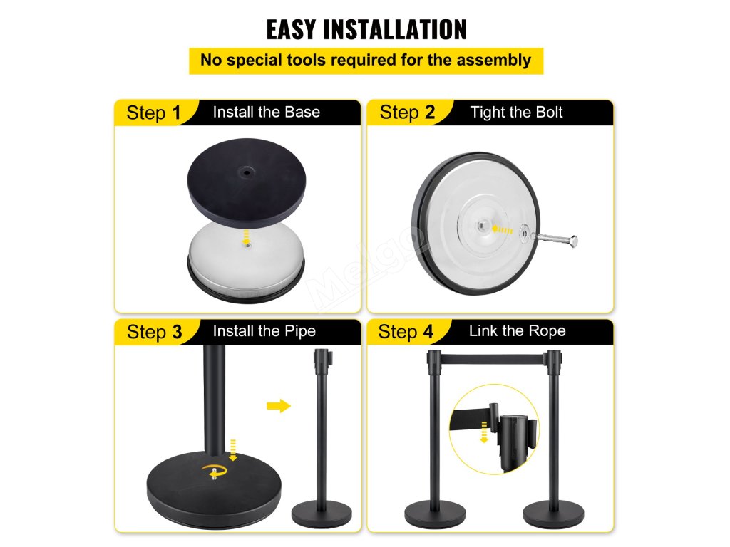 Stojan na kontrolu davu VEVOR sa dá veľmi jednoducho nastaviť. Tyč sa zacvakne priamo do základne. Vďaka tomu je montáž rýchla a jednoduchá. Nie sú potrebné žiadne špeciálne nástroje ani zručnosti. Tieto zaťahovacie pásy sa mimoriadne ľahko vysúvajú a zasúvajú. Umožňujú jednoduché úpravy rozloženia zábrany. Vďaka ich jednoduchému použitiu ich môžete použiť na rôzne nastavenia. Či už potrebujete fotobúdku alebo vstup na podujatie, nastavenie je bezproblémové. Procesom vás prevedú jasné pokyny. Všetky stojany sú pripravené na použitie v priebehu okamihu. Táto funkcia je užitočná najmä pre organizátorov podujatí. Šetrí čas a námahu pri príprave priestoru podujatia.