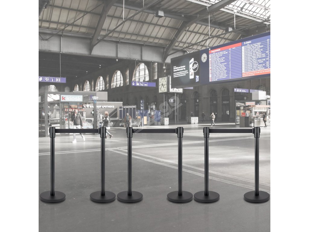 Sú vhodné na vnútorné aj vonkajšie podujatia. Vďaka ich pevnej konštrukcii sú spoľahlivé v rôznych prostrediach. Použite ich na riadenie radov, kontrolu prístupu alebo organizáciu priestorov. Dobre fungujú na podujatiach, v kanceláriách a na verejných priestranstvách; zaťahovacie pásy umožňujú flexibilné konfigurácie zábran. Vďaka tomu sa tieto univerzálne zábrany dajú prispôsobiť rôznym potrebám. Celočierny dizajn dobre ladí s akýmkoľvek prostredím. Tieto zábrany sú veľmi všestranným nástrojom na riadenie davu. Môžete ich použiť na akomkoľvek podujatí alebo mieste konania.