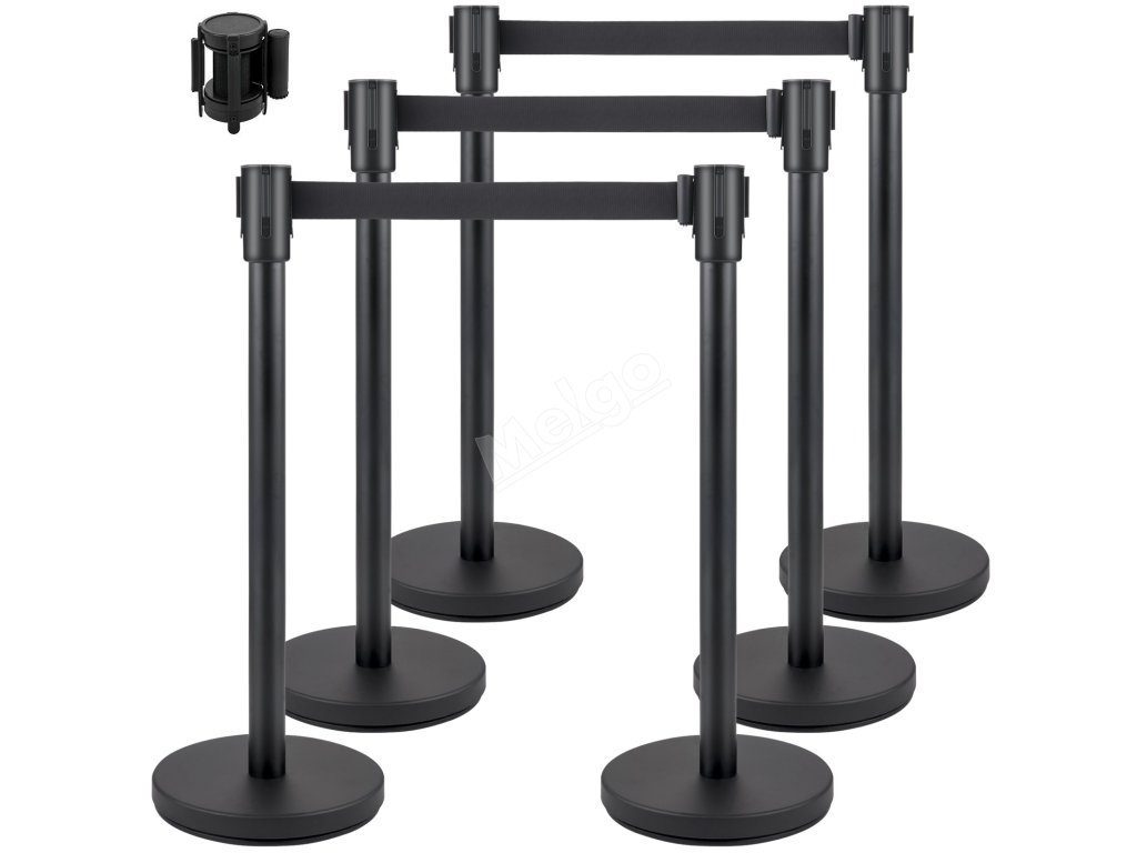 Sloupky zábran s vysouvací páskou, 6 ks, 2 m, černé, beton/kov