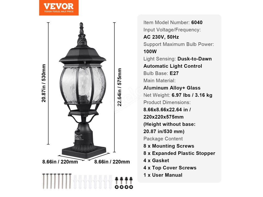 2 balení venkovních sloupových svítidel 20,87 palce/530 mm