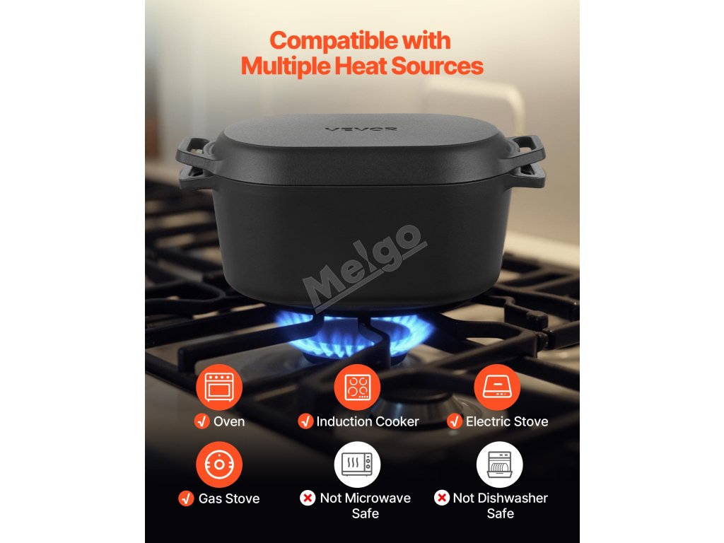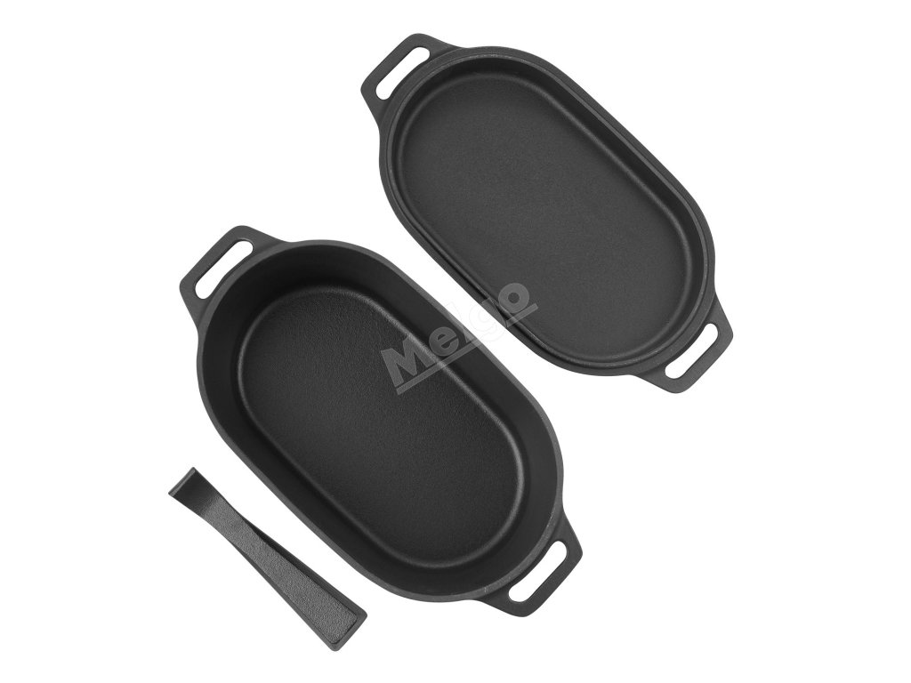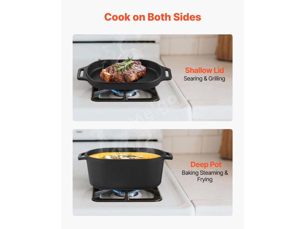 Praktická smaltovaná holandská trouba 2 v 1 má hluboký hrnec na dušení, smažení a pečení, zatímco pánev s plochým dnem je ideální na grilování. Splní všechny vaše potřeby při vaření!