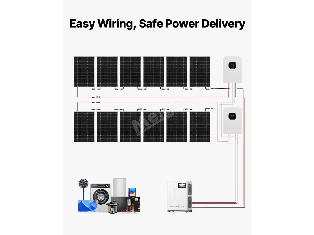 Solární komplet 4800W 48V: 12×400W panely, 51,2V 300Ah, 2×5000W měniče