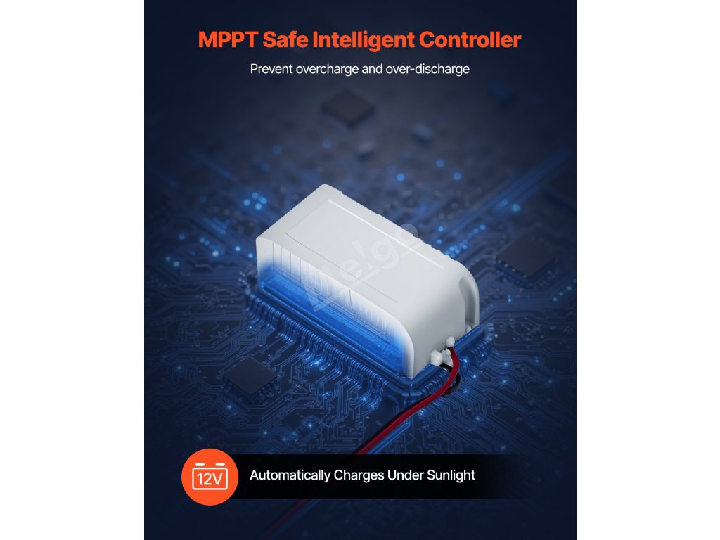 Udržovač solárních baterií je vestavěný inteligentní regulátor MPPT, který poskytuje několik vrstev ochrany. Zajišťuje optimalizovanou účinnost nabíjení a zároveň chrání baterii a solární systém.