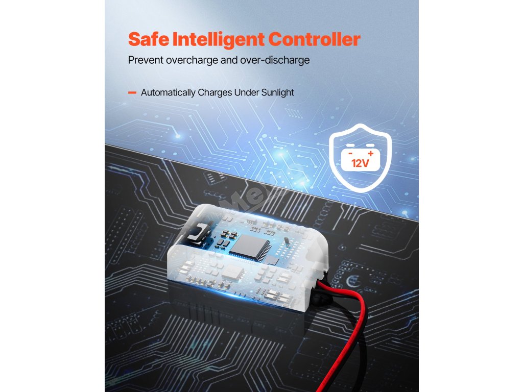 Nabíječka baterií solárních panelů má vestavěný inteligentní regulátor, který nabízí několik úrovní ochrany. Zajišťuje optimalizovanou účinnost nabíjení a zároveň chrání baterii a solární systém.