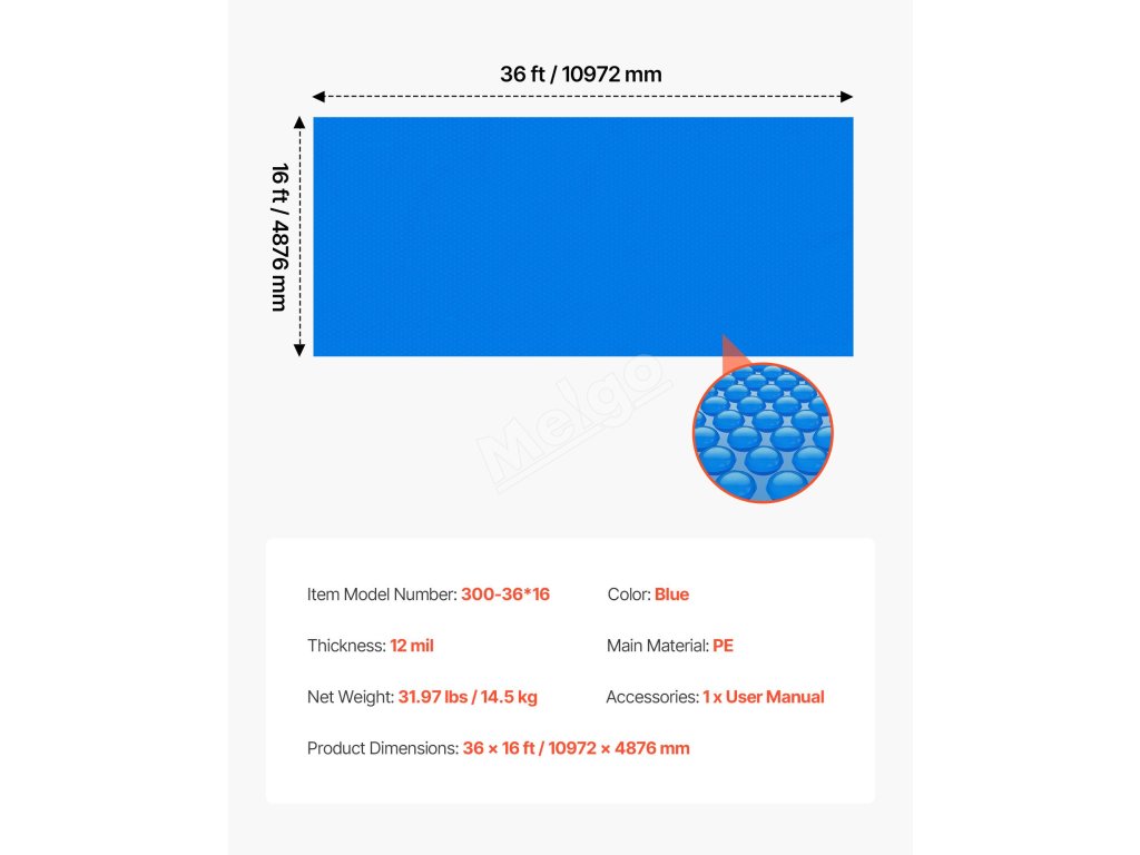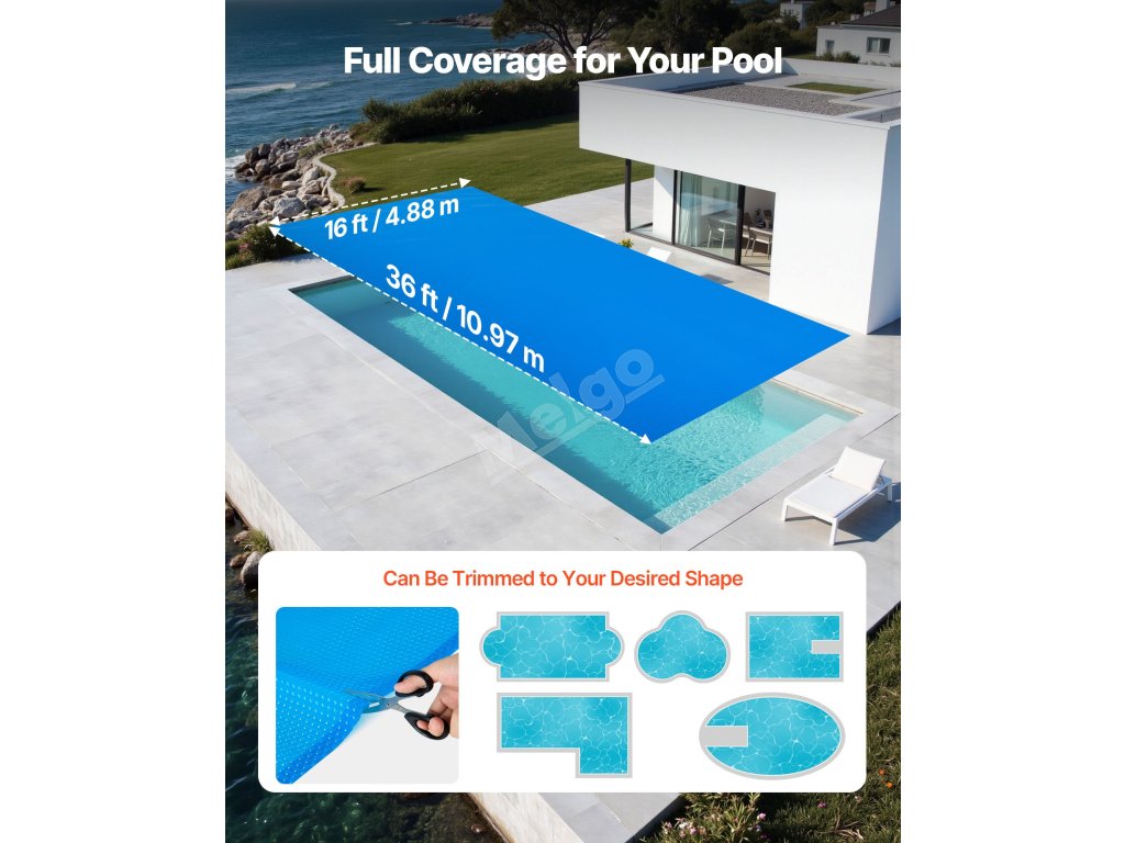 Prodlužte si koupací sezónu s naším solárním krytem na bazén o rozměrech 36 x 16 stop/10,97 x 4,88 m. Pomáhá zvyšovat teplotu vody a udržovat teplo přes noc. Je vyroben z odolného 12mil PE materiálu, snižuje odpařování o 95 %, minimalizuje potřebu doplňování vody a udržuje váš bazén čistý.