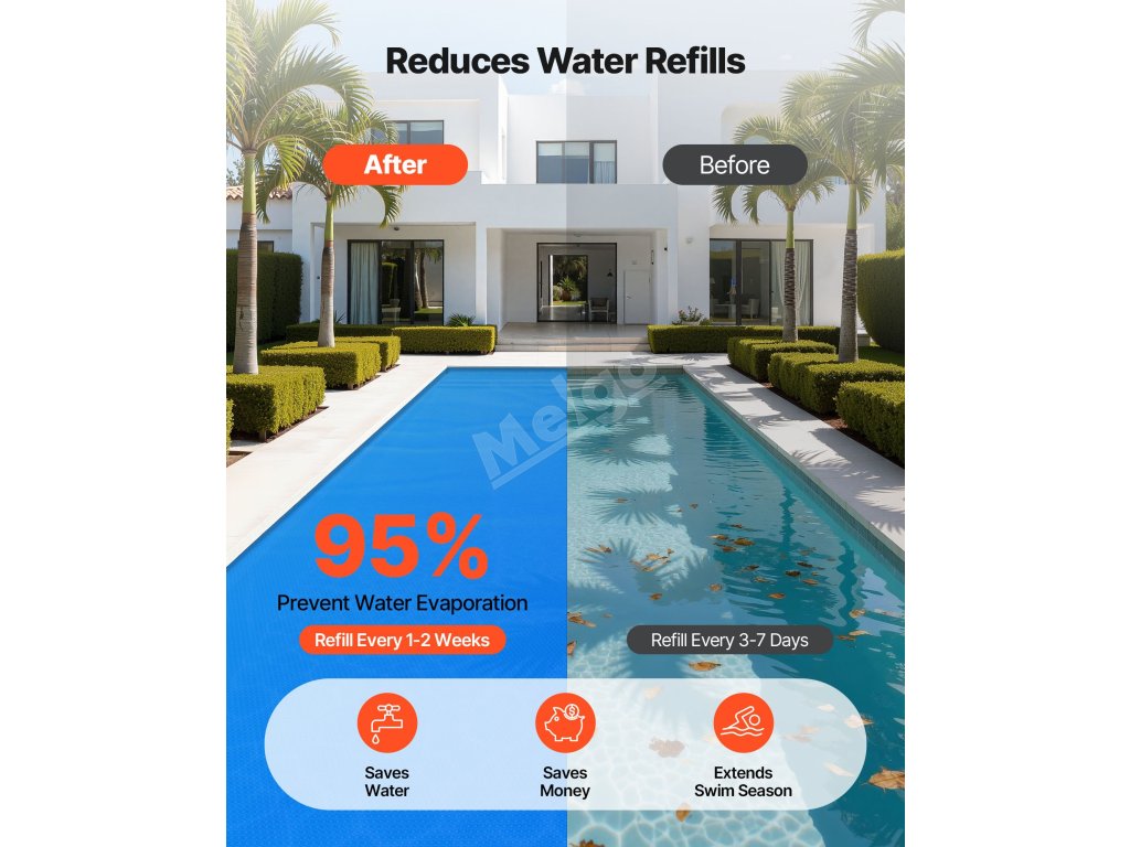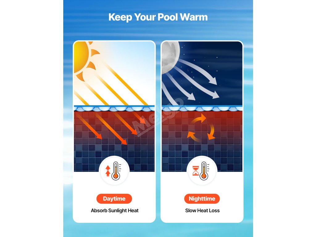 Těsně zabalené mikrobublinky na tomto solárním bazénovém krytu zvyšují retenci tepla, zabraňují tepelným ztrátám a udržují ideální teplotu bazénu. Užijte si teplé a pohodlné koupání bez chladu i v chladnějších dnech.