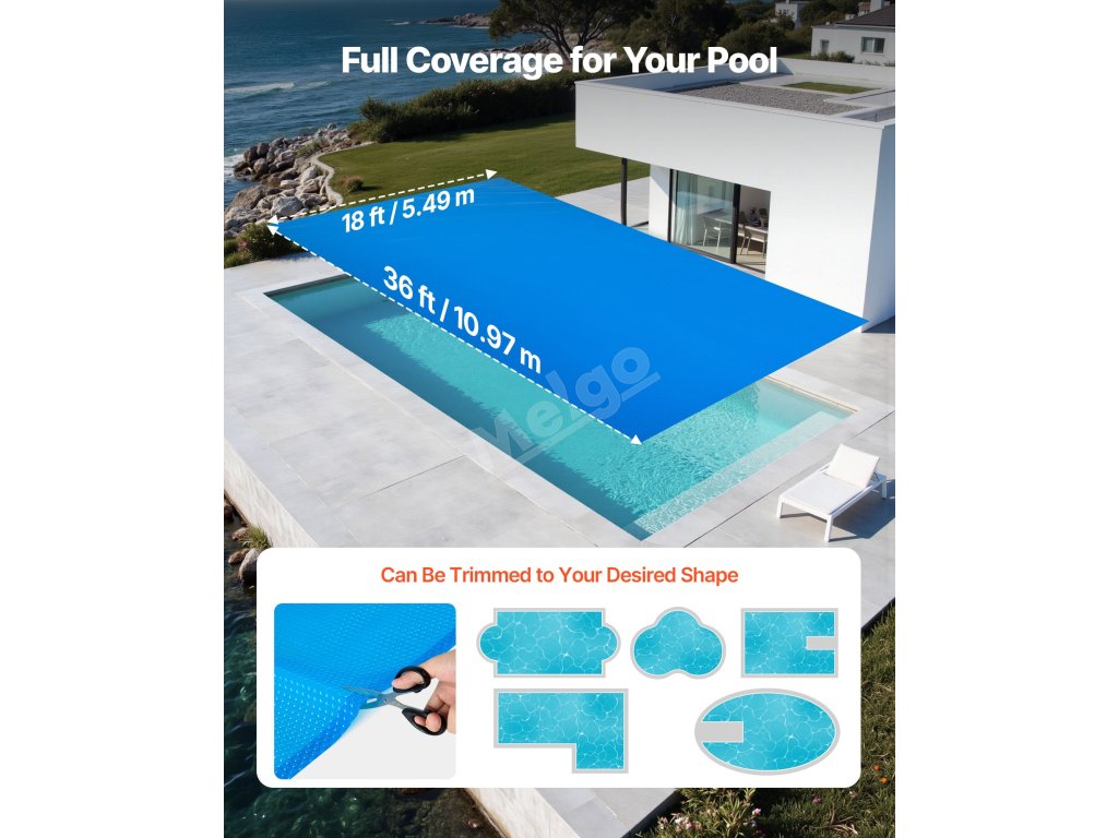 Tento solární kryt bazénu lze snadno přizpůsobit jakémukoli tvaru bazénu, ať už je kulatý, oválný nebo nepravidelný. Jeho flexibilní konstrukce se přizpůsobí vašemu bazénu a zajistí přesné uchycení a efektivní ohřev.