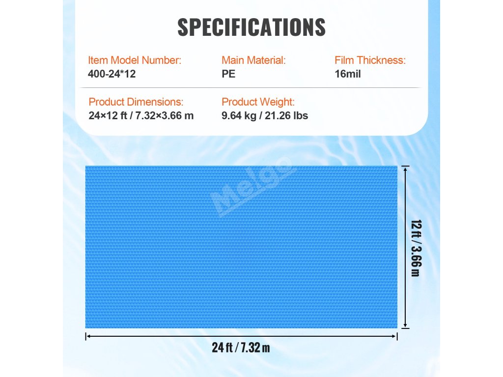 Solární plachta na bazén 24 × 12 ft obdélníková 16 mil. modrá