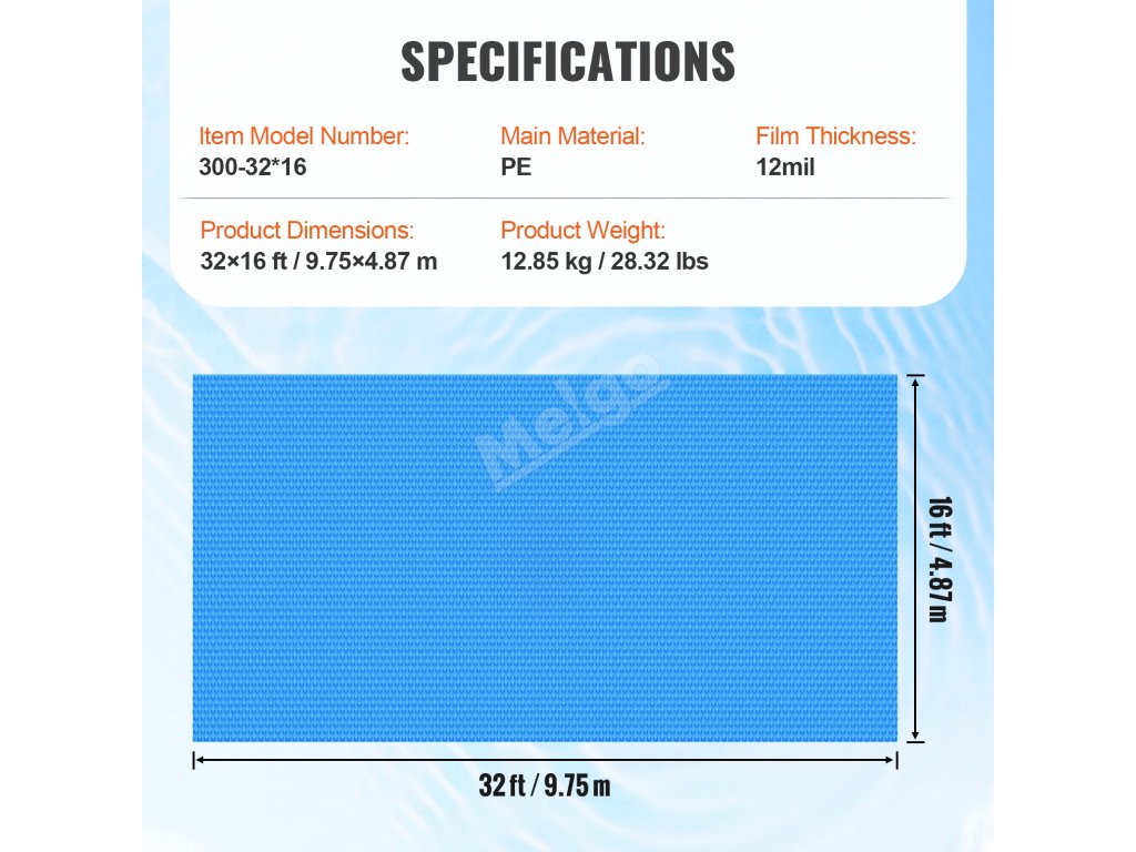 Solární plachta na bazén obdélníková 32×16 ft 12 mil univerzální modrá