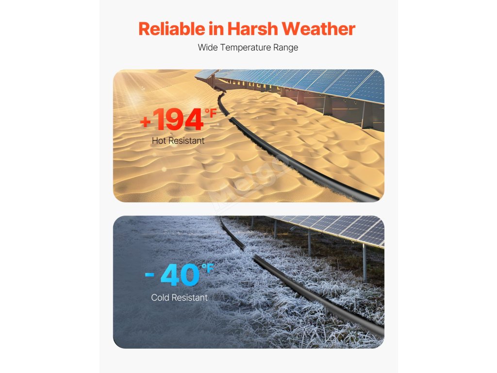 A:Nejprve se ujistěte, že jmenovité hodnoty proudu a napětí kabelu odpovídají specifikacím solárního systému. Tento kabel je 10 AWG.
