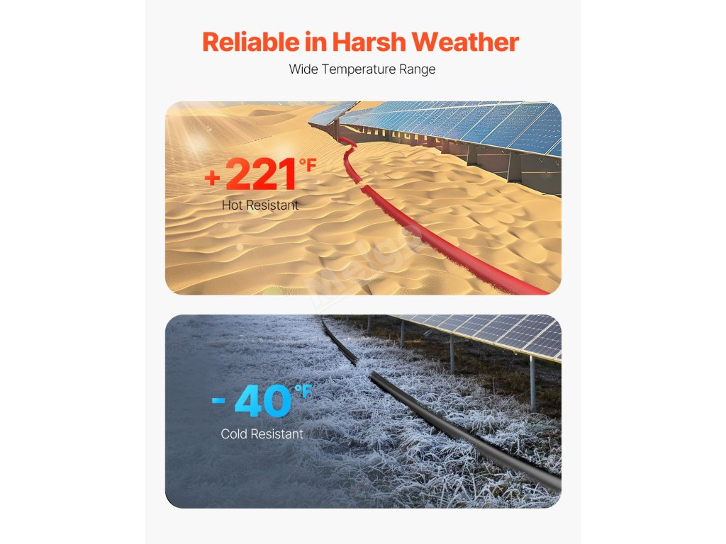 A:Nejprve se ujistěte, že jmenovité hodnoty proudu a napětí kabelu odpovídají specifikacím solárního systému. Tento kabel je 10 AWG.