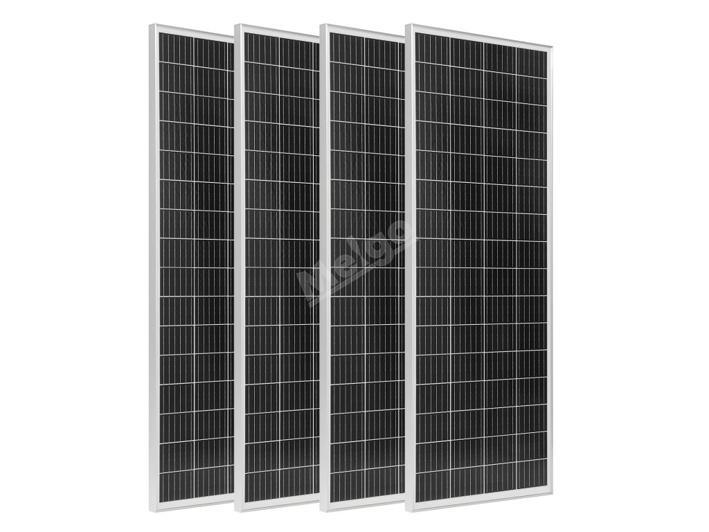 Tato sada solární energie obsahuje 4 ks 100W monokrystalických solárních panelů, 12,8V 200Ah LiFePO₄ baterii, 40A MPPT solární regulátor nabíjení a 12V 2000W střídač. S výkonem až 1600Wh/den a 2560Wh baterií poskytuje spolehlivou energii pro obytné vozy, lodě, domy a další.