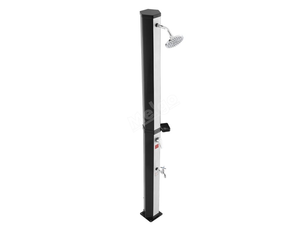 Solární sprcha 35L, výška 195cm, teplá/studená, nožní kohout, police