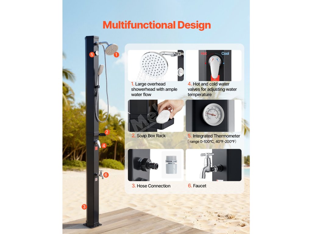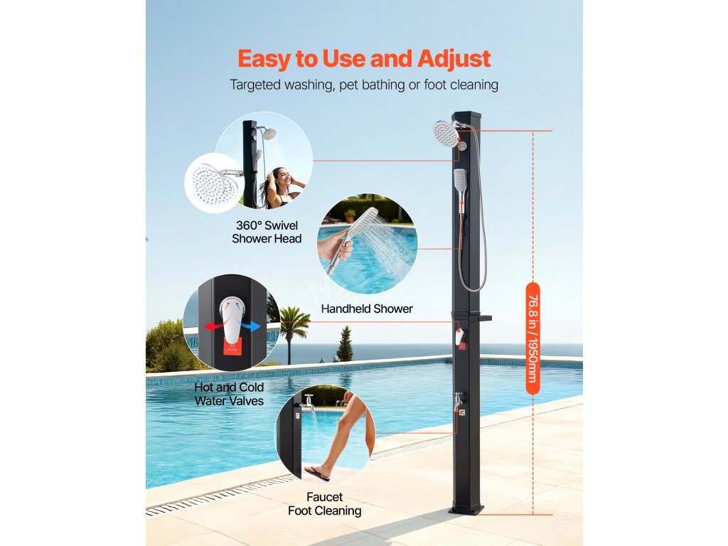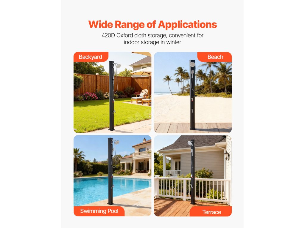Hodí se k bazénu na dvorku, na kempování nebo na pláž. Před odchodem do interiéru z nich rychle smyjete písek, sůl nebo opalovací krém. Nabízí pohodlný způsob osvěžení po venkovních aktivitách.