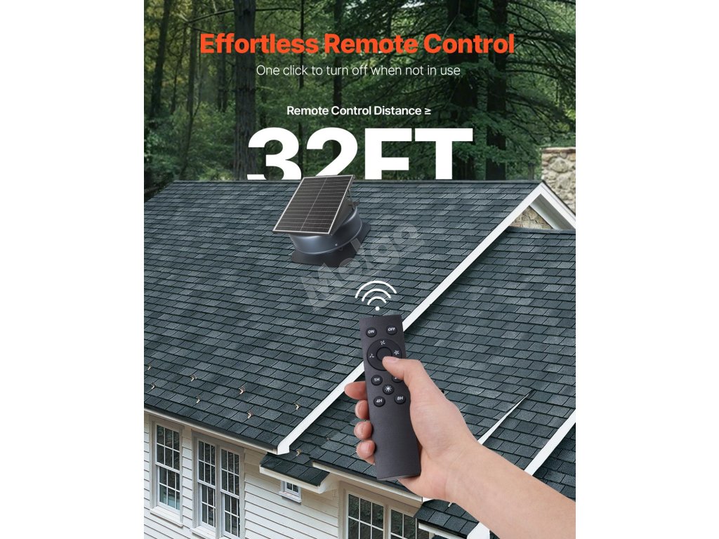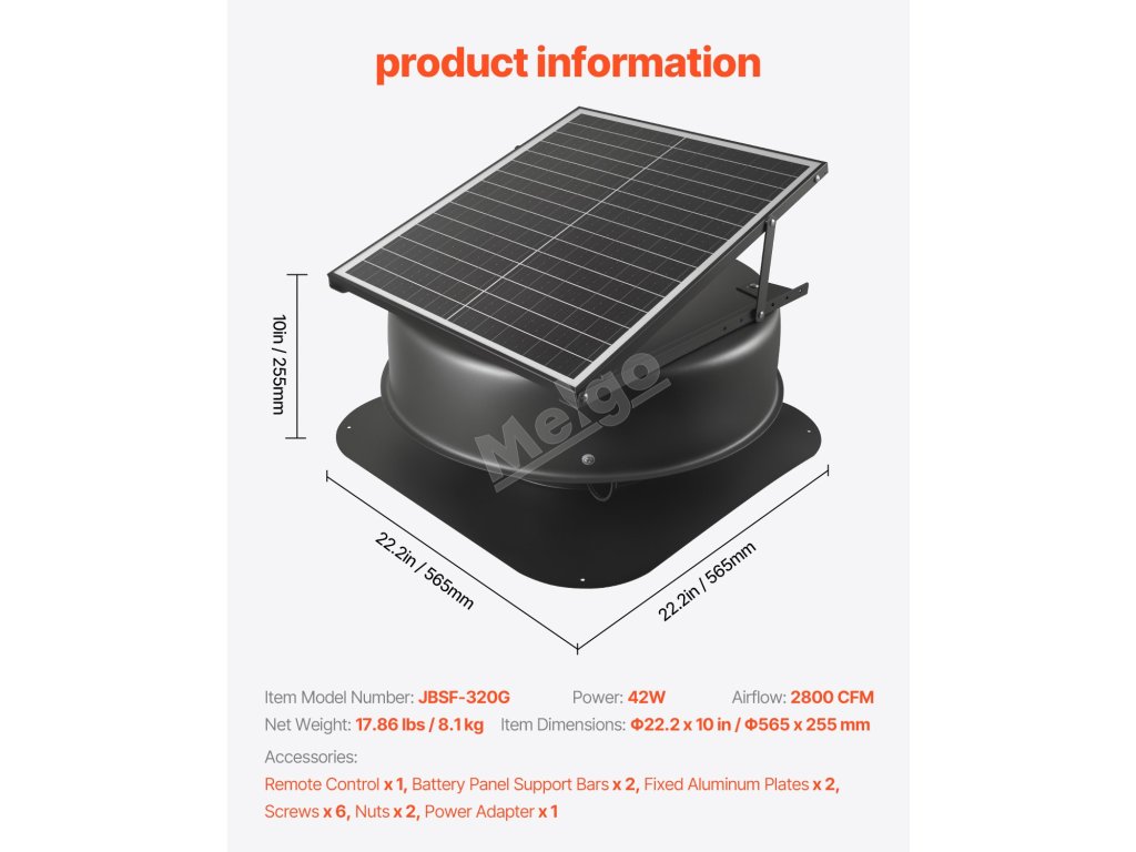 Solární střešní odtahový ventilátor 42W, 2800 CFM, dálkové ovládání