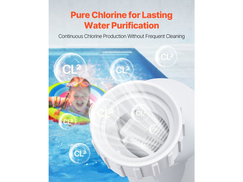 Tento chlorinátor do bazénu se slanou vodou využívá pokročilou elektrolytickou technologii, která generuje chlór reakcí mezi titanovými deskami a solí, čímž zajišťuje dlouhodobě stabilní a efektivní provoz a zároveň udržuje vodu ve vašem bazénu stále čistou.
