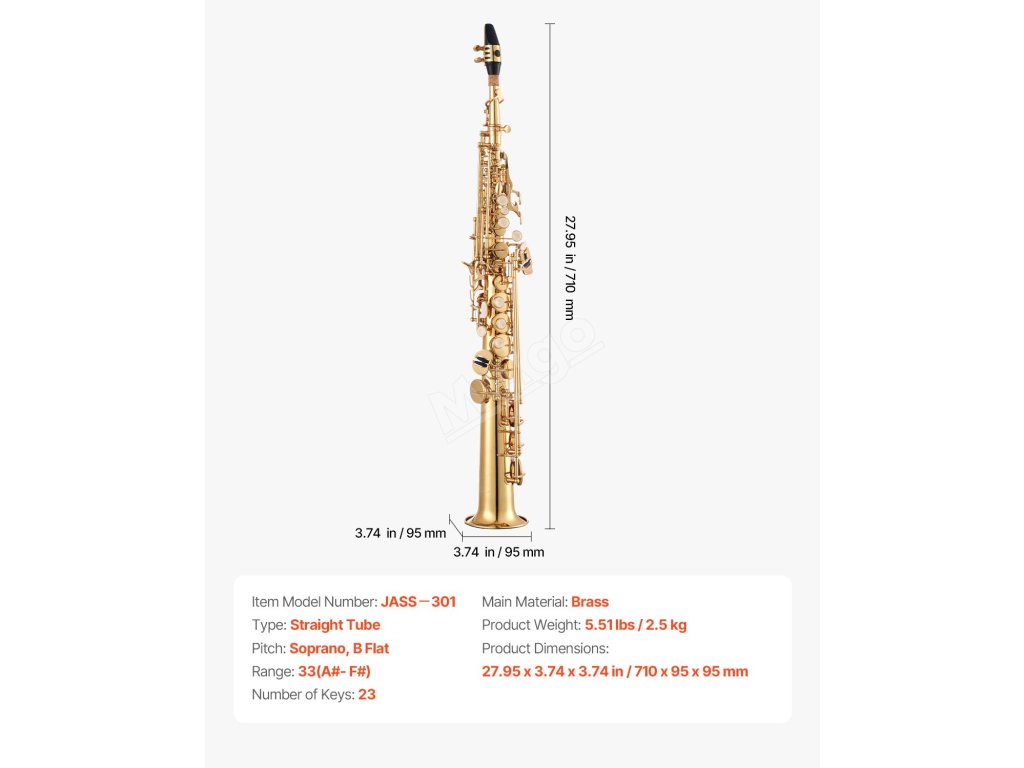 Sopránový saxofon v b♭, mosaz, 23 kláves, kufr a příslušenství