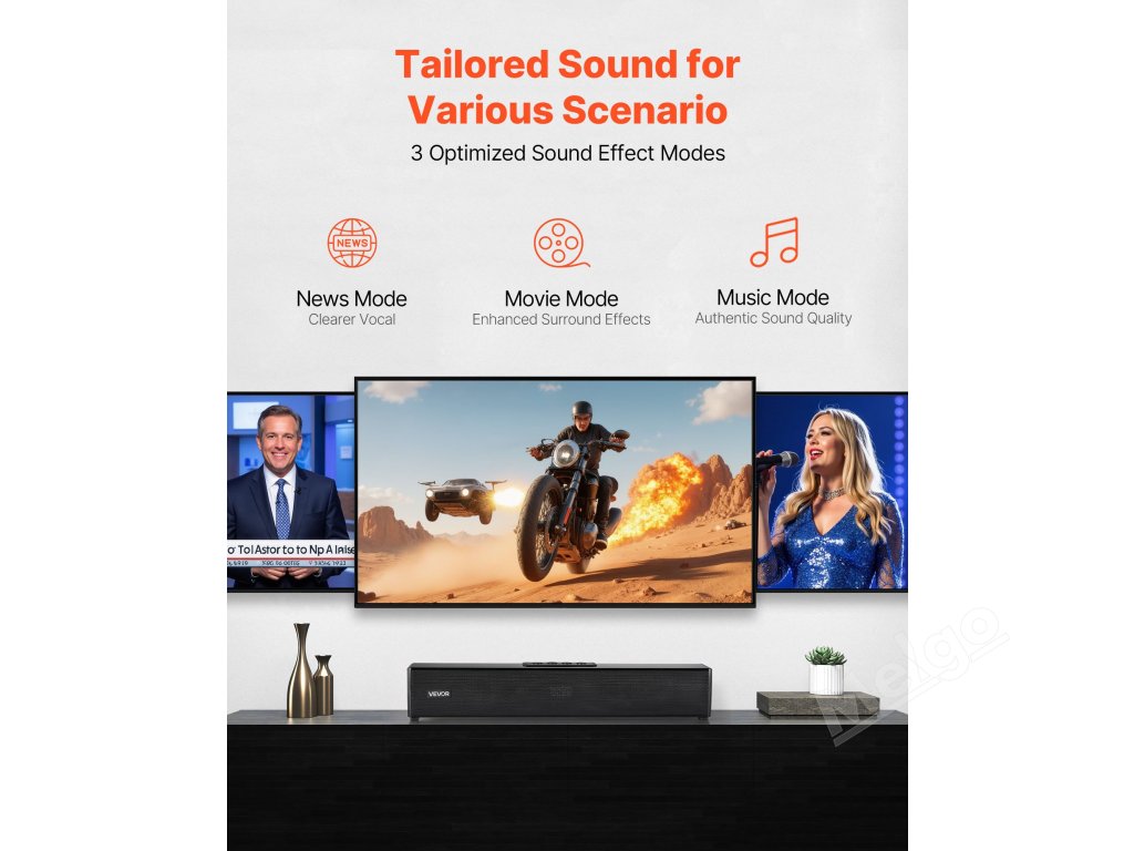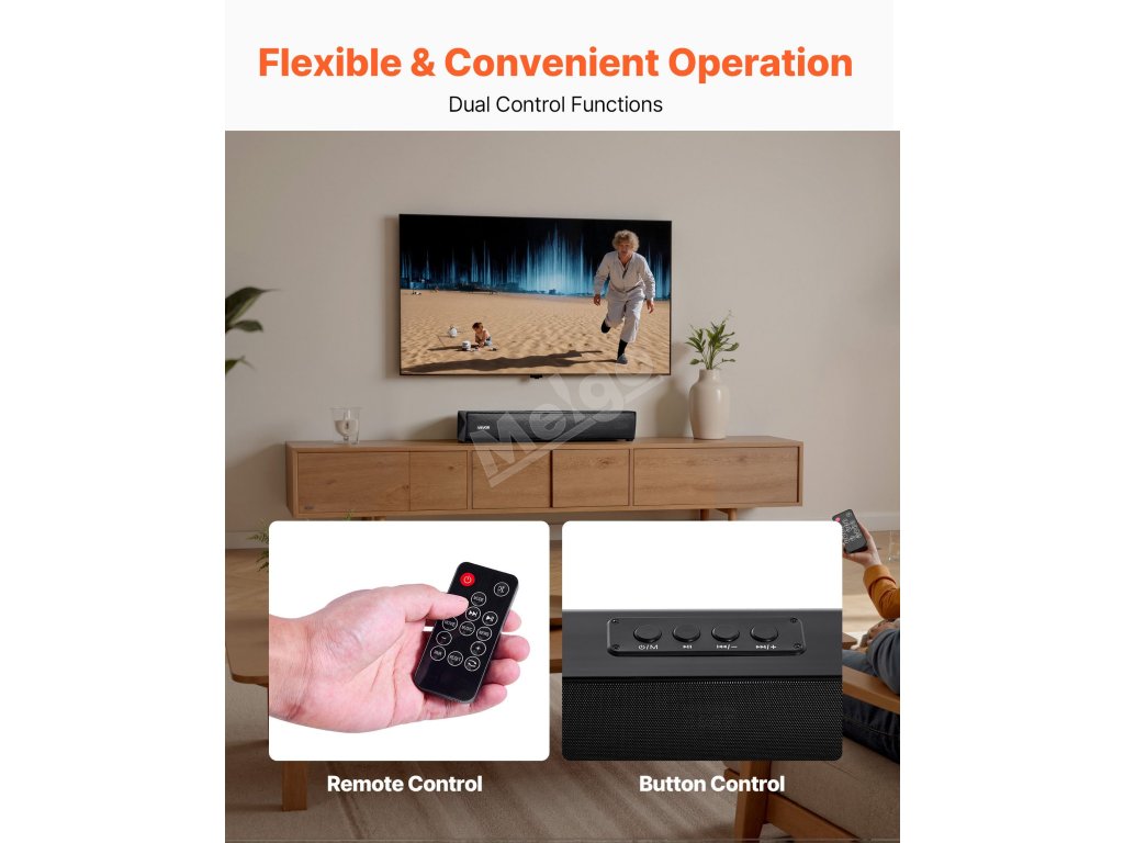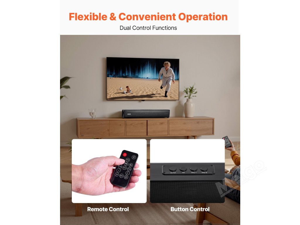 Náš soundbar k televizoru obsahuje dálkové ovládání pro snadné přepínání bez vstávání. Jedním kliknutím můžete nastavit hlasitost, přepínat zvukové režimy nebo ovládat přehrávání/pauzu. Umožňuje snadné přepínání mezi režimy filmů, hudby a zpráv pro pohodlný zvukový zážitek.