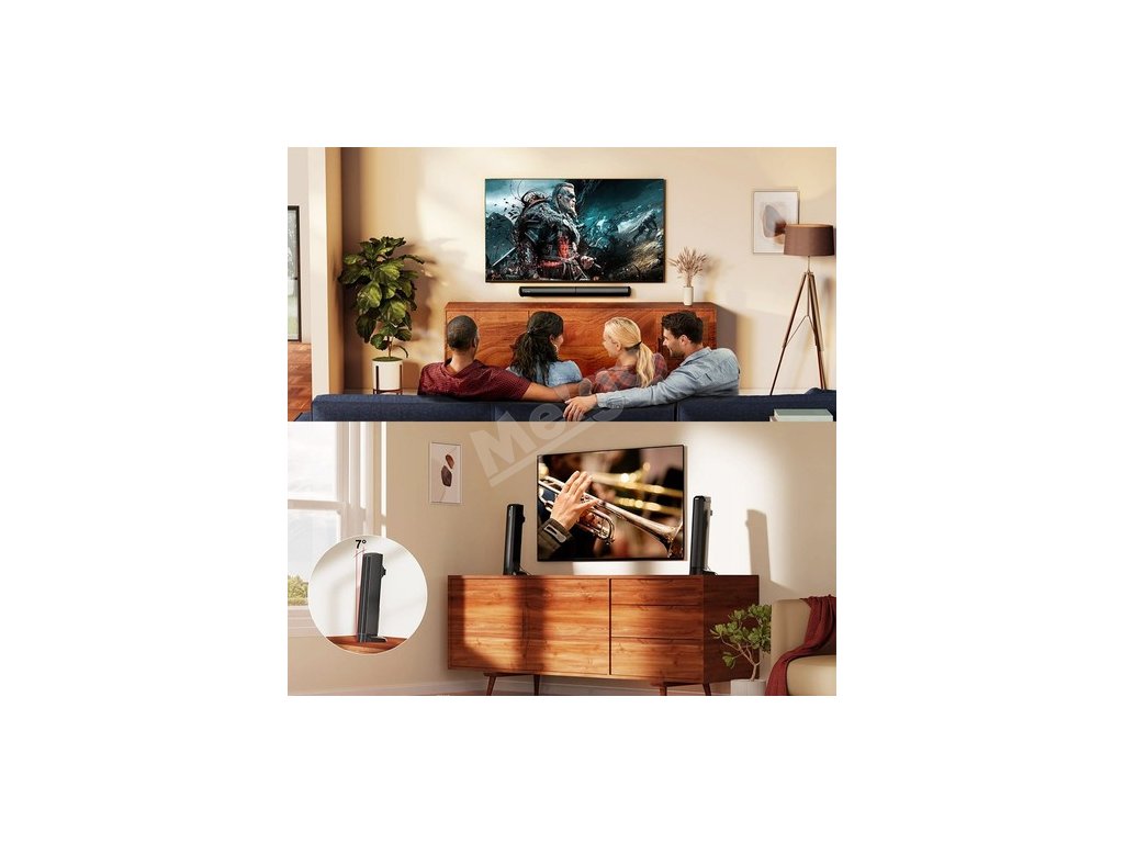 Odnímatelná konstrukce pro více místa: Dělená konstrukce našeho televizního soundbaru vám umožní zabírat méně místa a zároveň zlepšit zvukové pole. Nastavte soundbar v preferovaném stylu v závislosti na uspořádání a atmosféře místnosti a přizpůsobte jej měnícím se potřebám a prostředí.