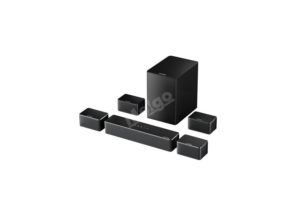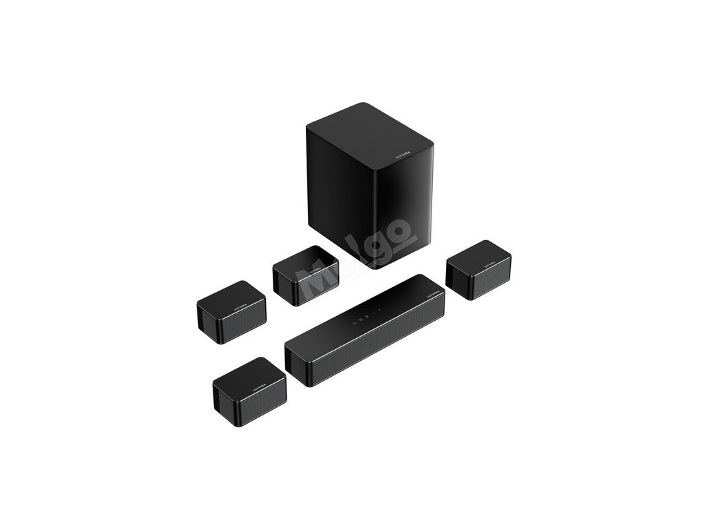 Vychutnejte si křišťálově čisté dialogy ze tří hlavních kanálů, 4 kabelových prostorových reproduktorů a 6,5" bezdrátového subwooferu pro širší zvukové pole. (Poznámka: Není kompatibilní s Dolby Audio/Atmos.)