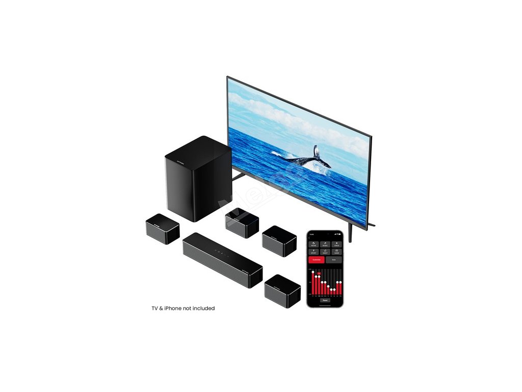 Tento televizor soundbar je vybaven 2 zadními a 2 předními reproduktory, které zajišťují přesnou projekci zvuku zepředu, zezadu a ze stran, čímž zvyšují prostorovost a pohlcují zvuk. Díky 13 nastavitelným úrovním prostorového zvuku, které povýší váš zážitek z prostorového zvuku, posune tento televizní soundbar váš zvuk na vyšší úroveň. 2 zadní reproduktory se připojují k subwooferu pomocí 20metrového kabelu, což umožňuje univerzální uspořádání a zlepšuje využití prostoru.