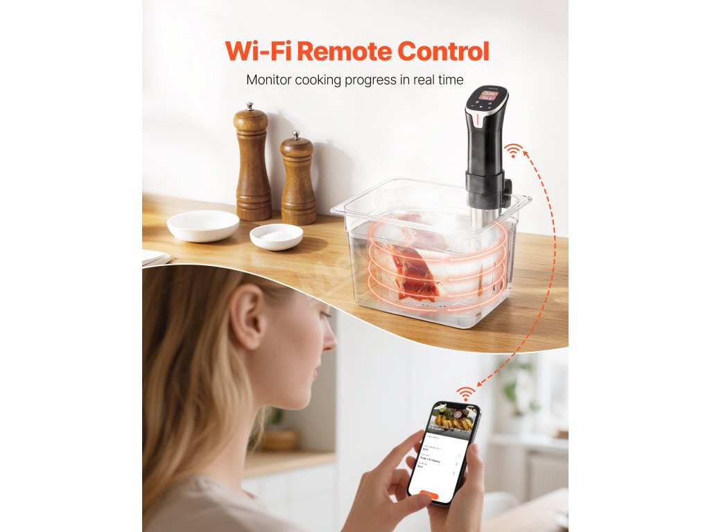Sous-vide vařič 1100 W, wifi, 10 programů, přesná teplota a časovač