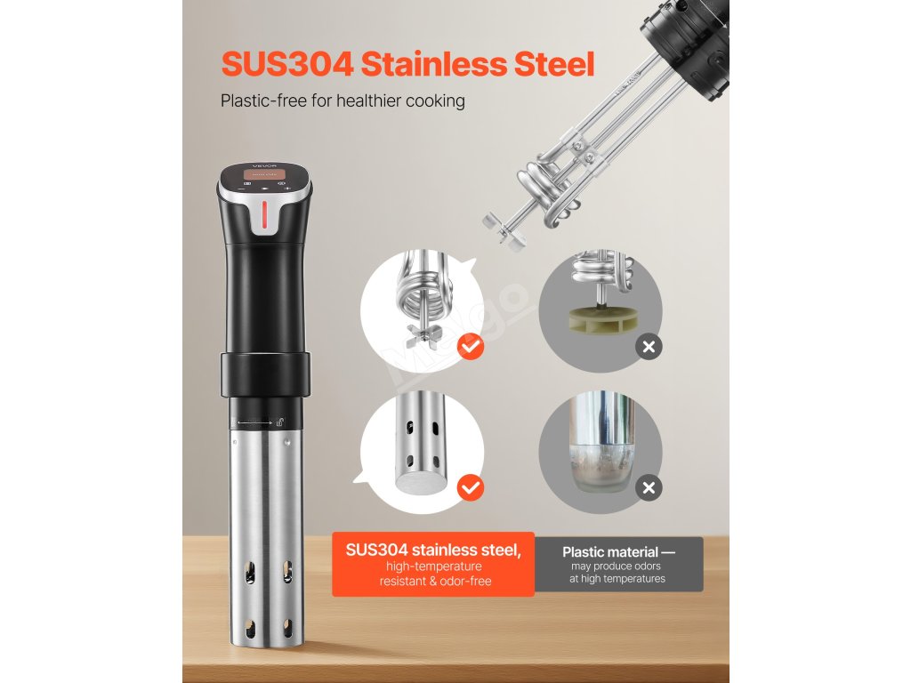 Vychutnejte si jídla v restaurační kvalitě s naším přesným vařičem Sous Vide. Díky širokému rozsahu teplot, výkonu 1100 W a cirkulaci vody 3000 otáček za minutu poskytuje konzistentní a delikátní výsledky. Díky jednoduchému ovládání a nerezové oceli SUS304 je vaření snadné a spolehlivé.