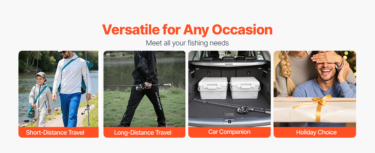 Díky své univerzální konstrukci je tento prut s navijákem VEVOR ideální pro každou situaci. Je dostatečně kompaktní, abyste jej mohli nosit s sebou na krátké výlety, vejde se do cestovního kufru na dlouhé dovolené a lze jej uložit do auta pro nouzové rybářské výpravy. Skvělá volba, pokud se chcete podělit o svou vášeň pro rybaření.