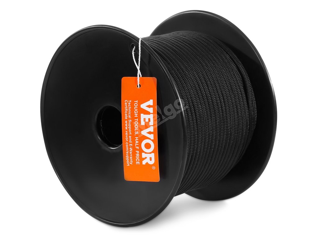 Spletené nylonové lano 3/16 in × 250 ft, 32 pramenů, 720 lbs, černé
