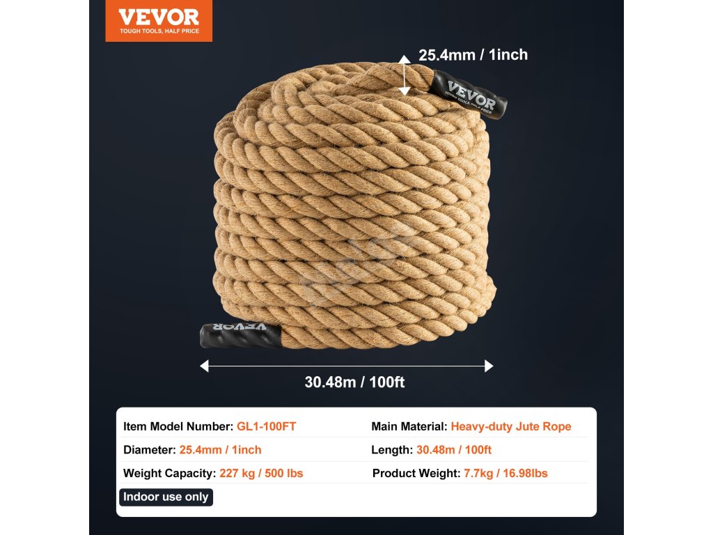 Toto cvičební lano je vyrobeno z prvotřídního vysokopevnostního jutového materiálu, je silné a robustní a vydrží vysoce intenzivní tahy a zatížení. Vhodné pro použití při soutěžích v přetahování lanem bez obav z přetržení. Upozorňujeme, že by se měl používat v suchém prostředí, nejlépe v interiéru.