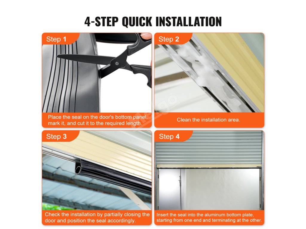 Toto těsnění garážových vrat je dodáváno s jednoduchým návodem k instalaci, která vyžaduje pouze 4 jednoduché kroky. Nevyžaduje žádné složité nářadí ani odborné znalosti. Těsnění můžete nainstalovat na různé typy a velikosti vrat, které vyhovují vašim potřebám, což poskytuje větší flexibilitu.