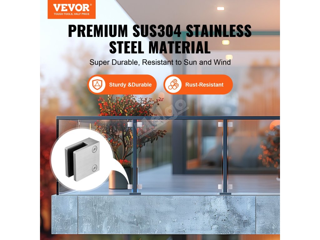 Naše svorka na sklo je vyrobena z prvotřídní nerezavějící oceli, je odolná proti korozi a vhodná do všech povětrnostních podmínek. Je opakovaně použitelná a snadno se přizpůsobí různým tloušťkám skla.