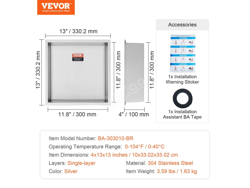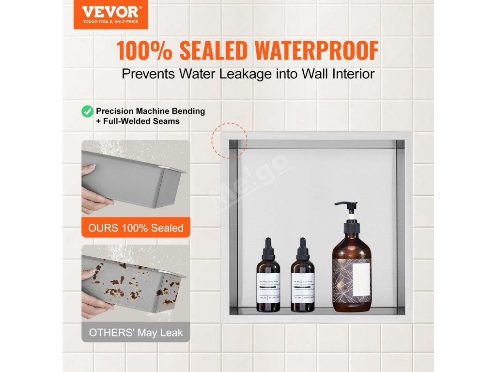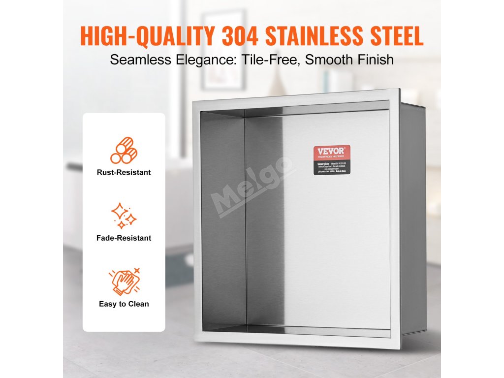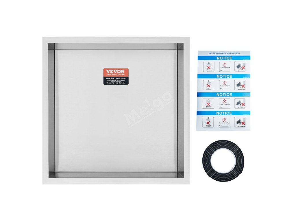 Sprchová nika 33.02×33.02 cm, nerez 304, vestavná, vodotěsná, dvojitá