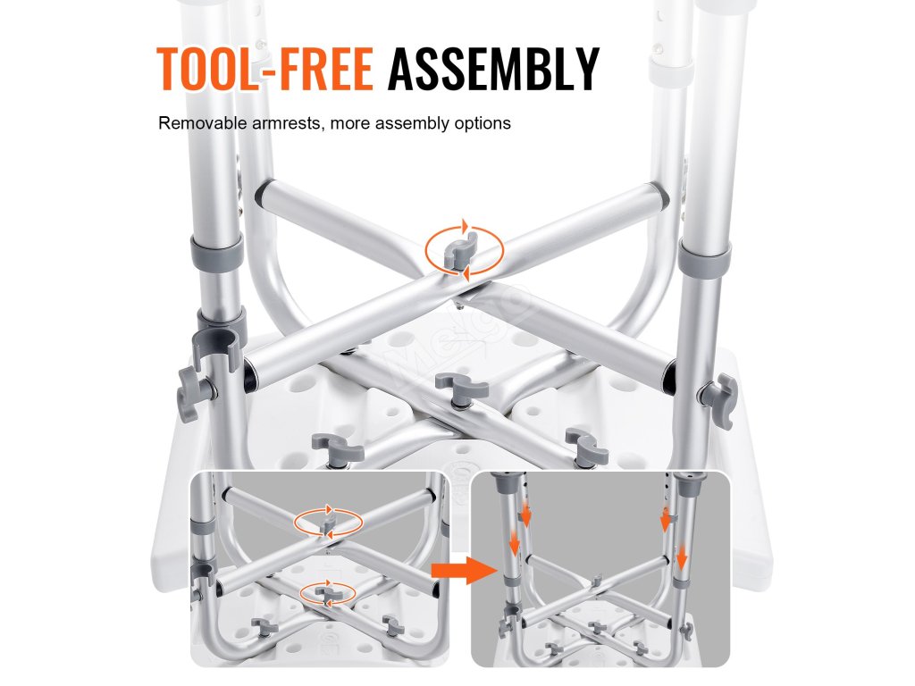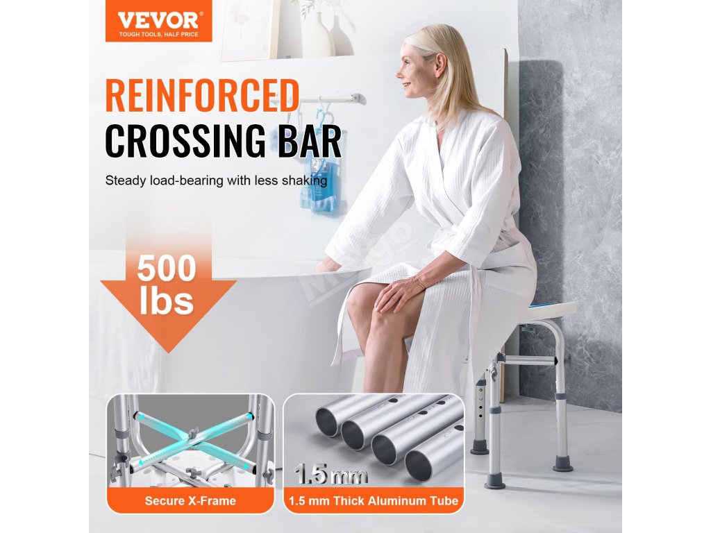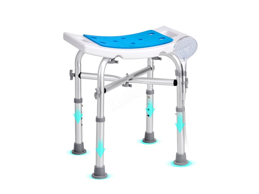 Díky víceúrovňovému nastavení výšky je naše koupací křeslo vhodné pro osoby s různou výškou. Tlačítko je navrženo pro snadné nastavení. Vestavěné rukojeti vám přinesou větší stabilitu, když na něm sedíte při sprchování. Zakřivené sedátko se přizpůsobí vašemu zadku a poskytuje větší pohodlí.