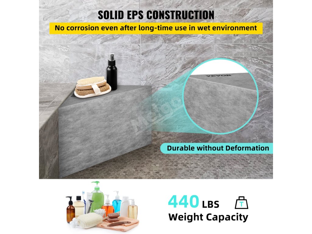 Naše sprchové sedátko připravené k obkládání je vyrobeno z pevného kompozitu EPS. Je navrženo pro dlouhodobé používání, čistí se otíráním a nepotřebuje žádnou údržbu.