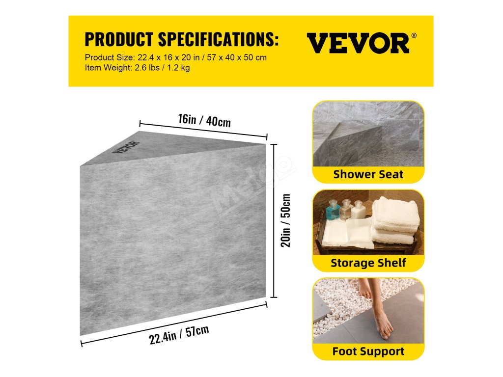 Sprchové rohové sedátko na obklad 22.4"×16"×20", nosnost 440 lbs