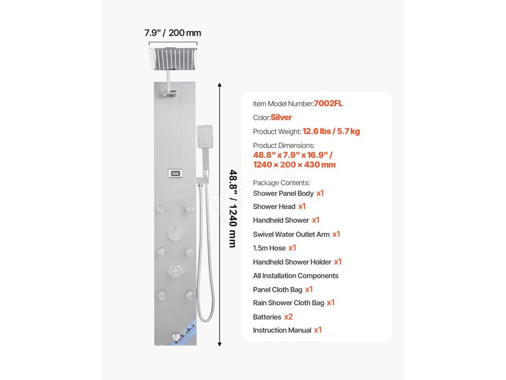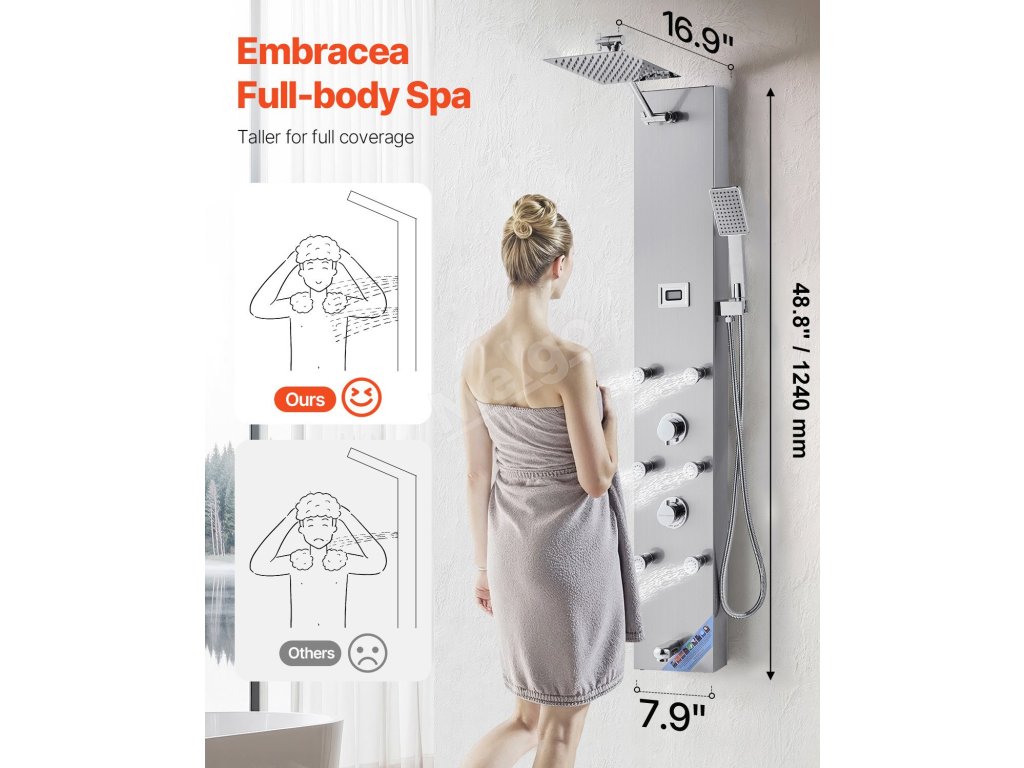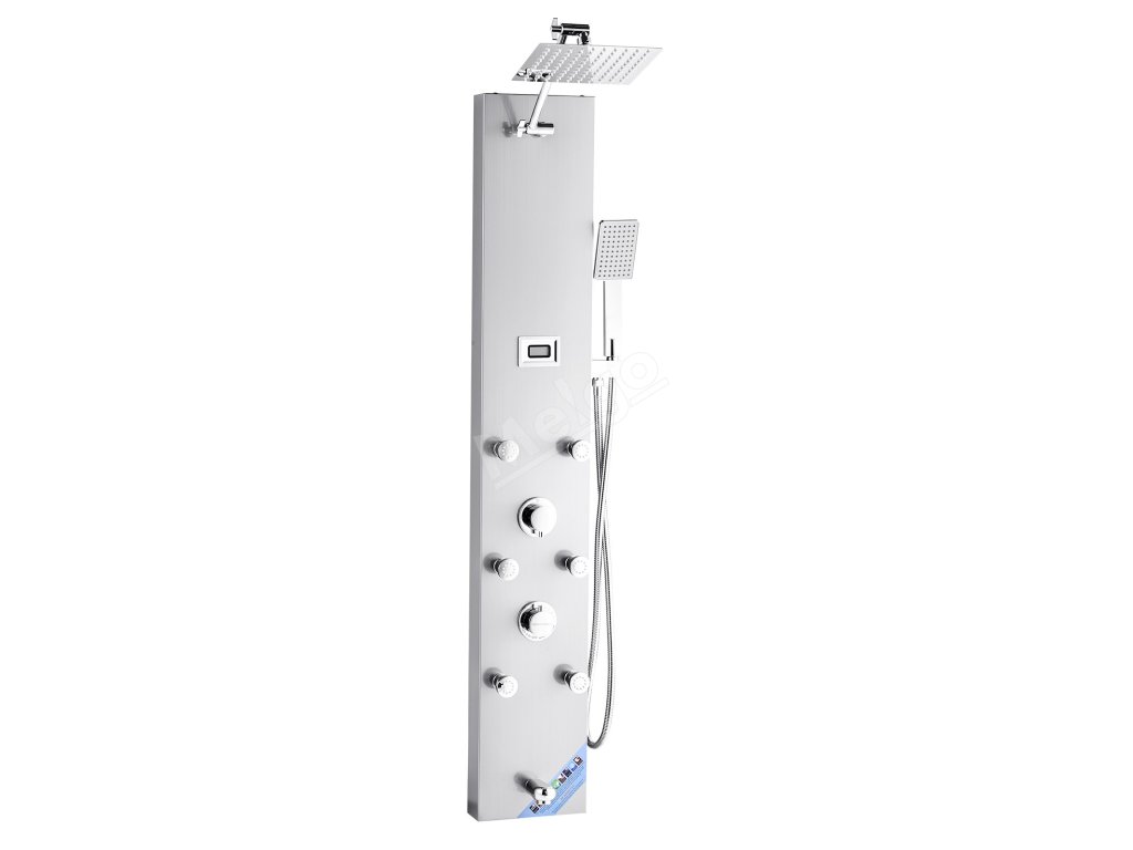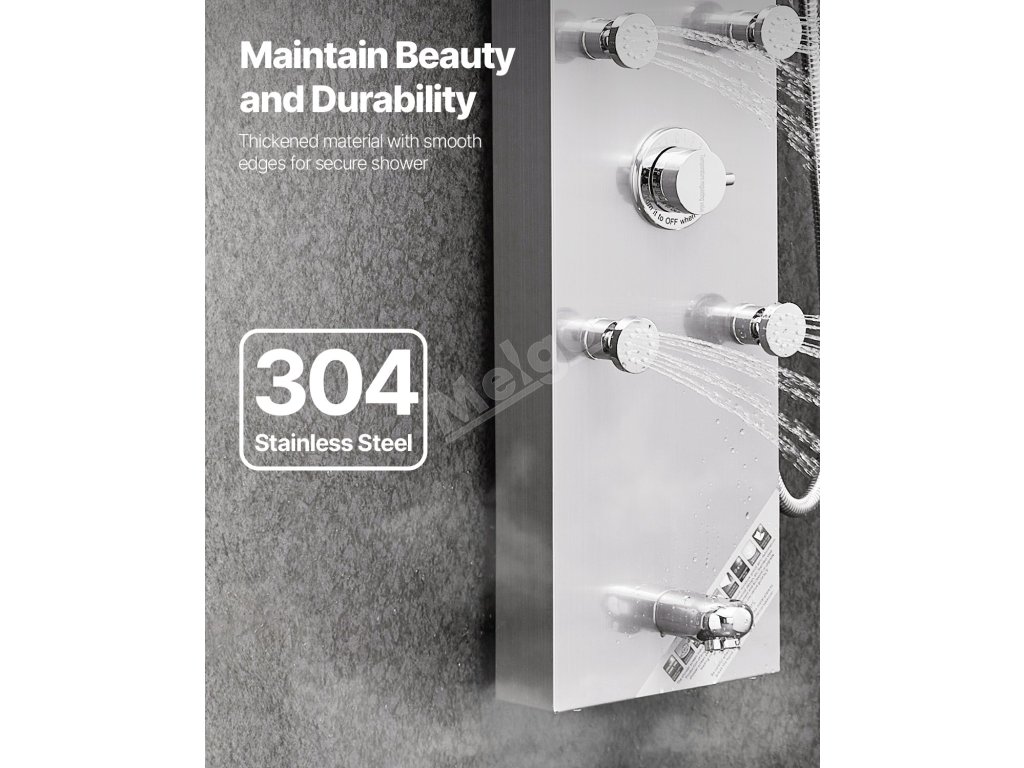 Sprchový panel 49 in broušený nerez dešťová, 6 trysek, 4-funkční mixér