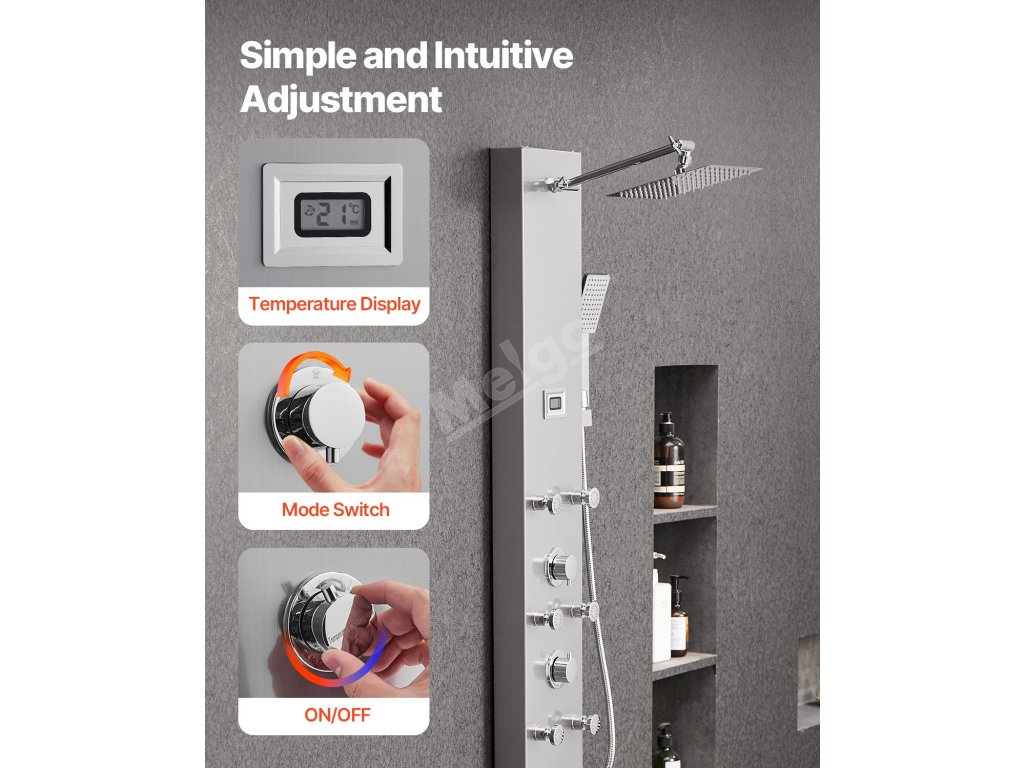 Tento věžový sprchový panel je multifunkční a lze jej přizpůsobit vaší náladě a potřebám. Zvýšená konstrukce poskytuje při sprchování přirozenější pokrytí proudem vody.