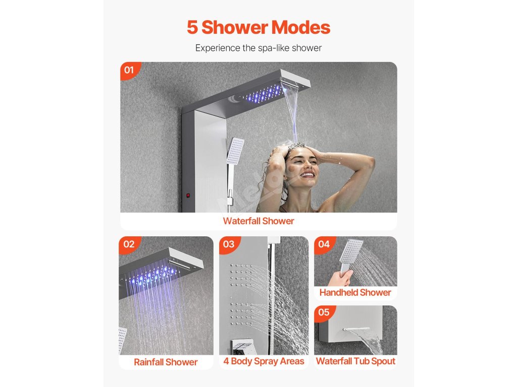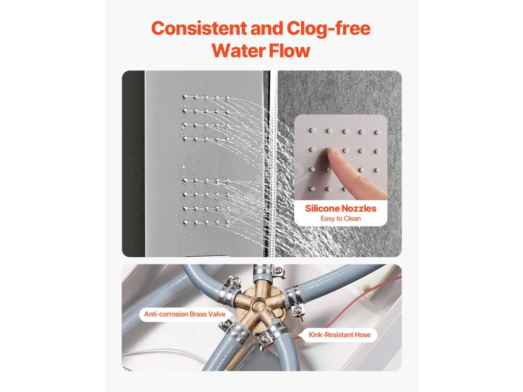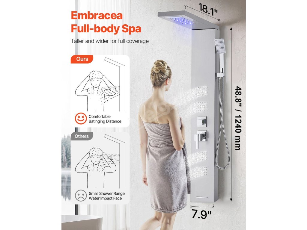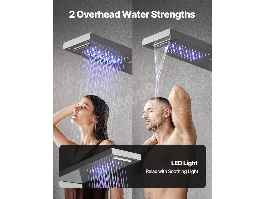 Přizpůsobitelné multifunkční sprchové panely s věžovým sprchovým systémem, které vyhoví vaší náladě a potřebám. Zvětšená konstrukce nabízí při sprchování přirozenější pokrytí vodou.