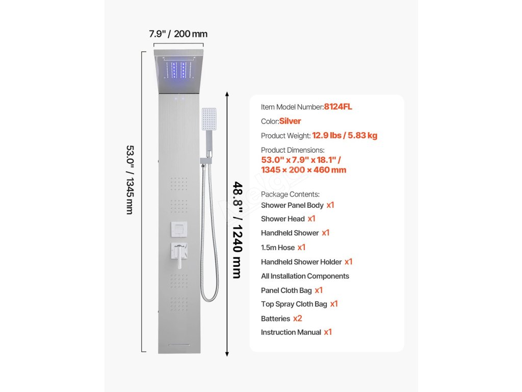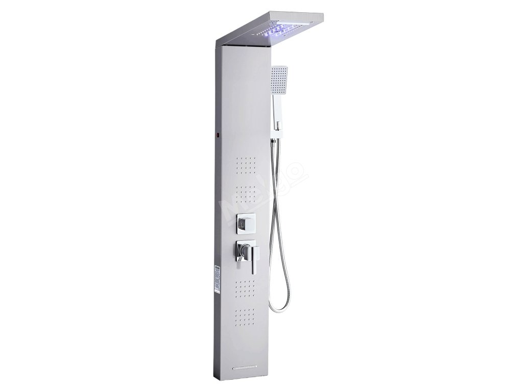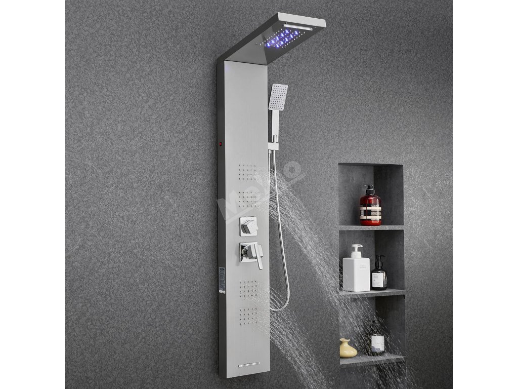 Sprchový panel 53 in broušená nerez, led, dešťová hlavice, 5 funkcí