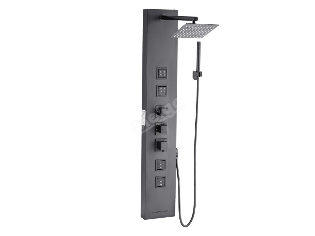 Sprchový panel nástěnný 49 in broušená nerez, dešťová hlavice, 4 trysky