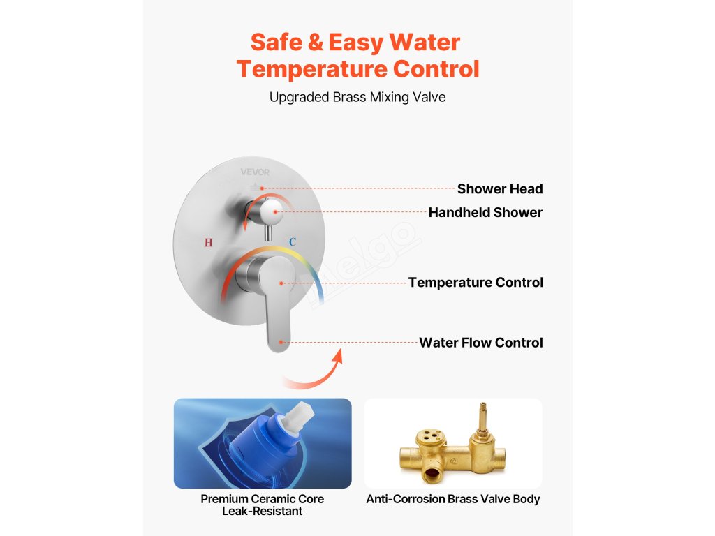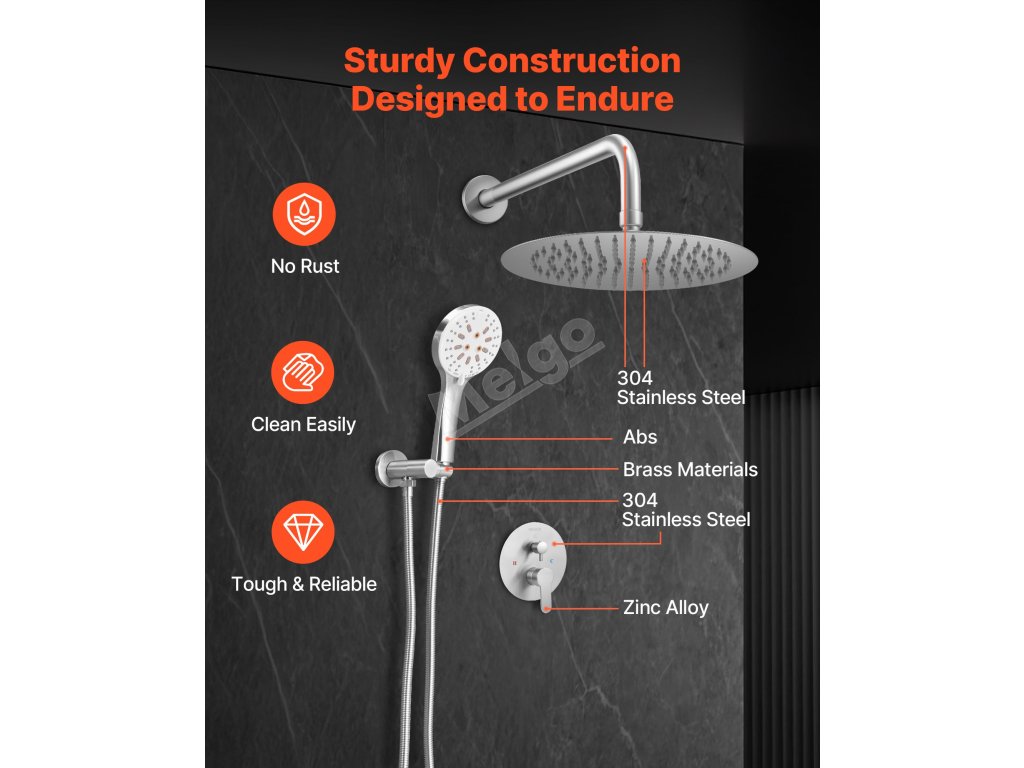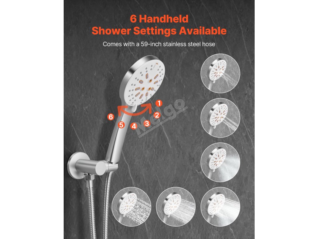 Naše sada dvoufunkčního sprchového systému nabízí možnost dešťové i ruční sprchy a poskytuje vysokotlaký proud vody, i když je hladina vody nízká, což poskytuje osvěžující a relaxační zážitek ze sprchování.