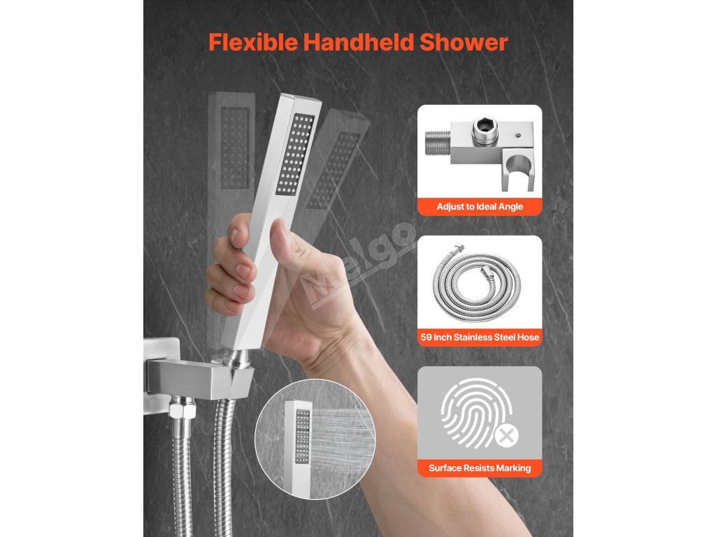 Naše sada dvoufunkčního sprchového systému nabízí možnost dešťové i ruční sprchy a poskytuje vysokotlaký proud vody, i když je hladina vody nízká, což poskytuje osvěžující a relaxační zážitek ze sprchování.