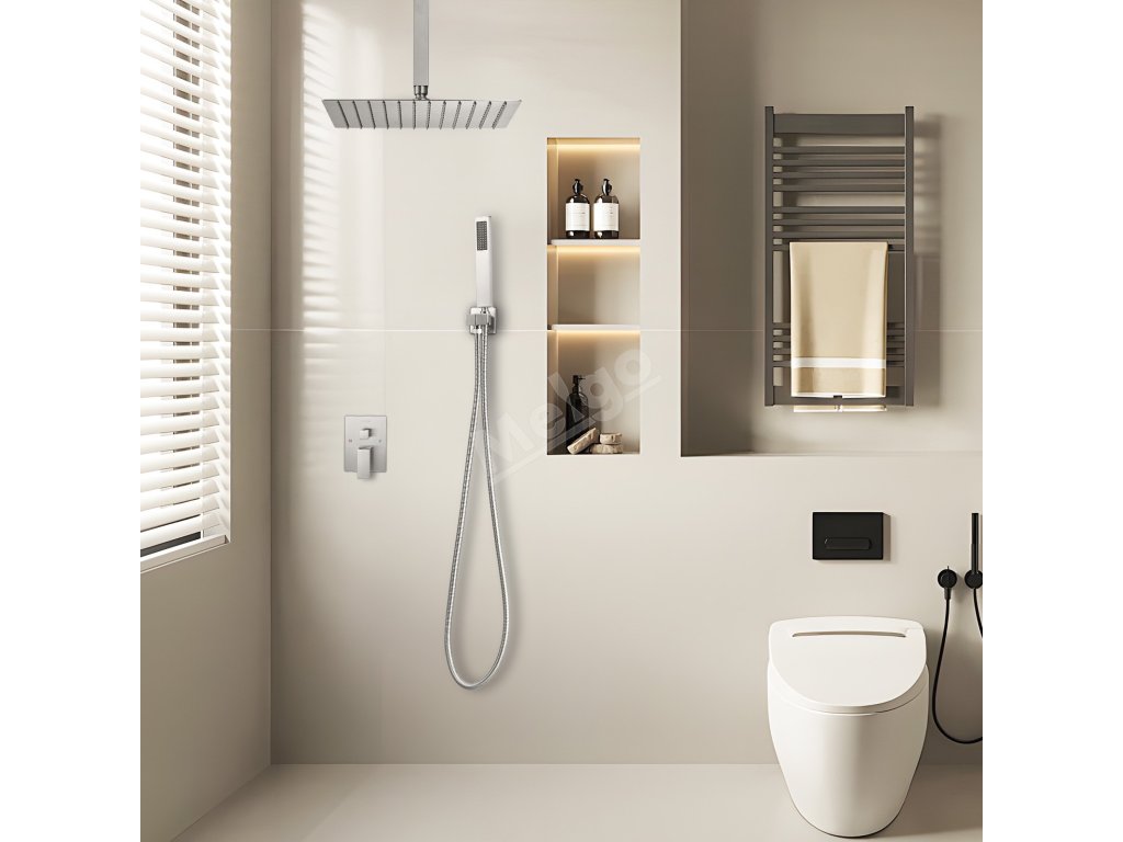 Sprchový set 12-inch (30.5cm) čtvercová hlavice, ruční, broušený nikl