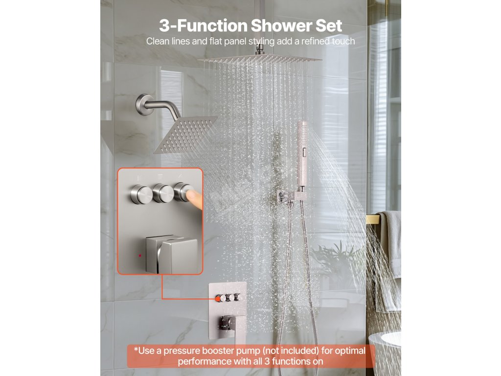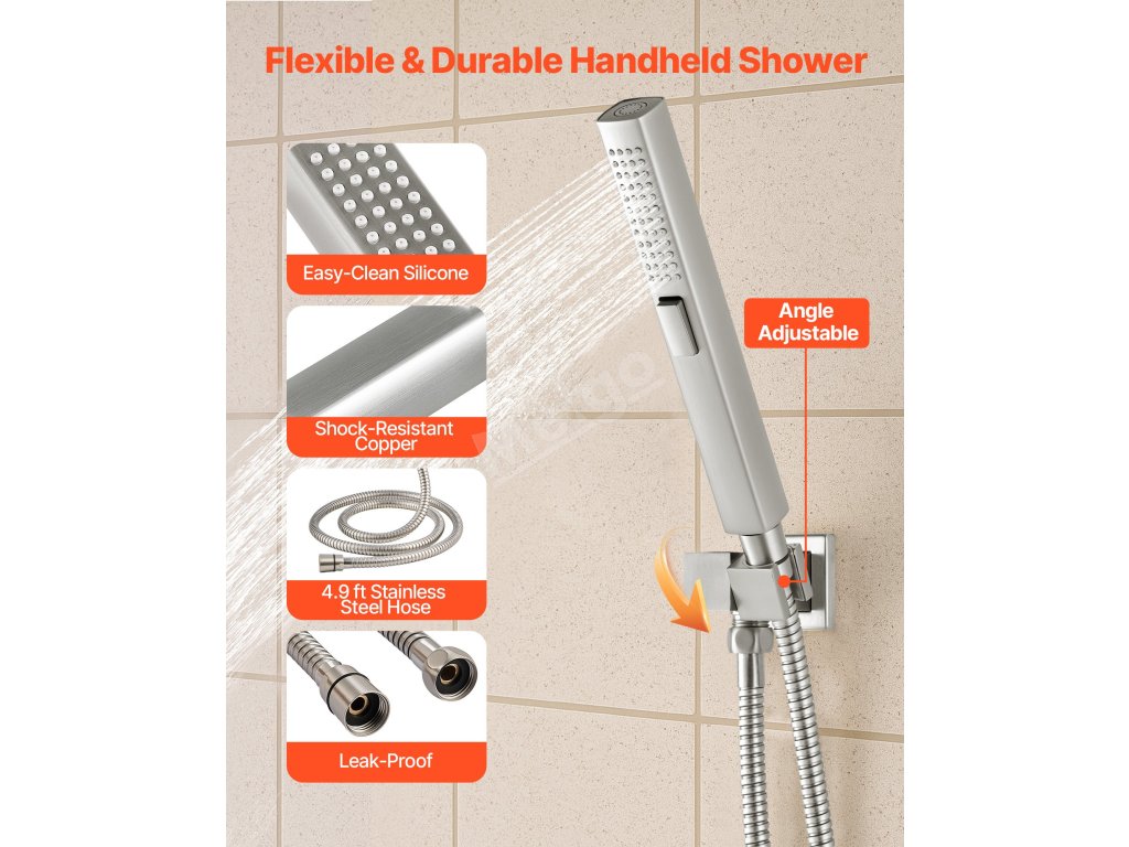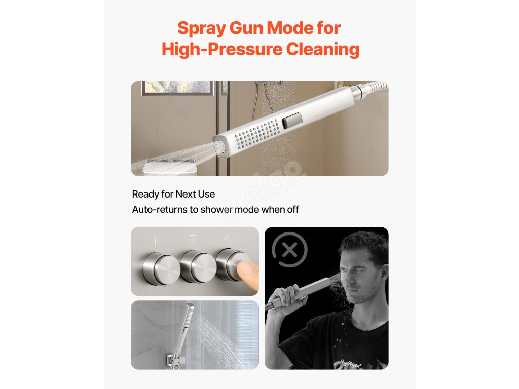 Naše sada sprchové baterie skrývá vodovodní potrubí za stěnou, čímž vytváří elegantní a špičkový vzhled koupelny. Obsahuje 3 osvěžující funkce sprchy - ruční, boční a horní - které umocňují zážitek z celého těla.
