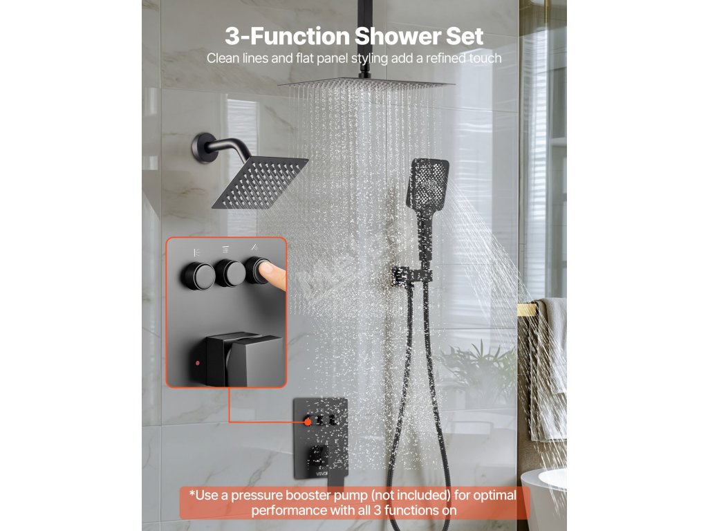 Naše sada sprchové baterie skrývá vodovodní potrubí za stěnou, čímž vytváří elegantní a špičkový vzhled koupelny. Obsahuje 3 osvěžující funkce sprchy - ruční, boční a horní - které umocňují zážitek z celého těla.