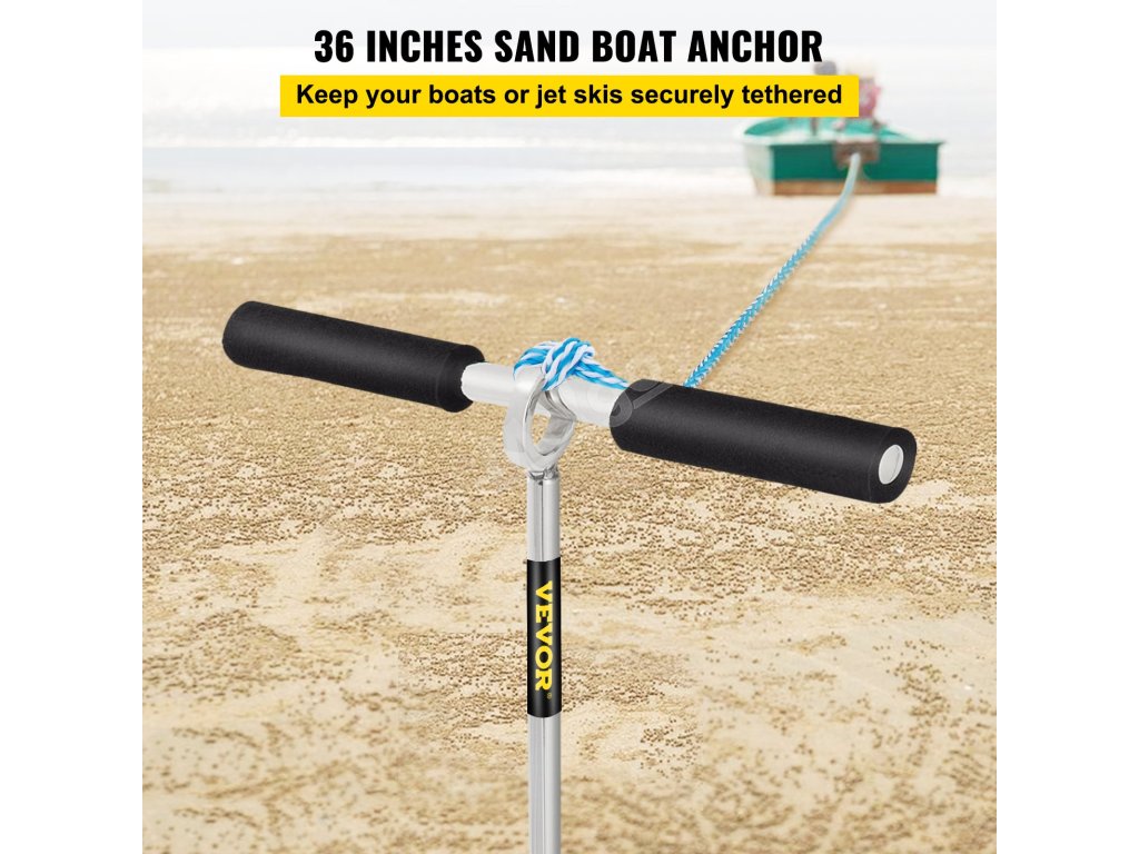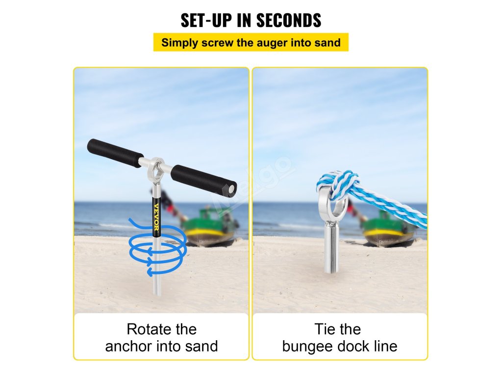 Ostrý vrták v naší tyčové kotvě pro lodě lze snadno zašroubovat do písku. Vysoká síla záběru zajistí, že vaše loď bude ukotvena na místě.