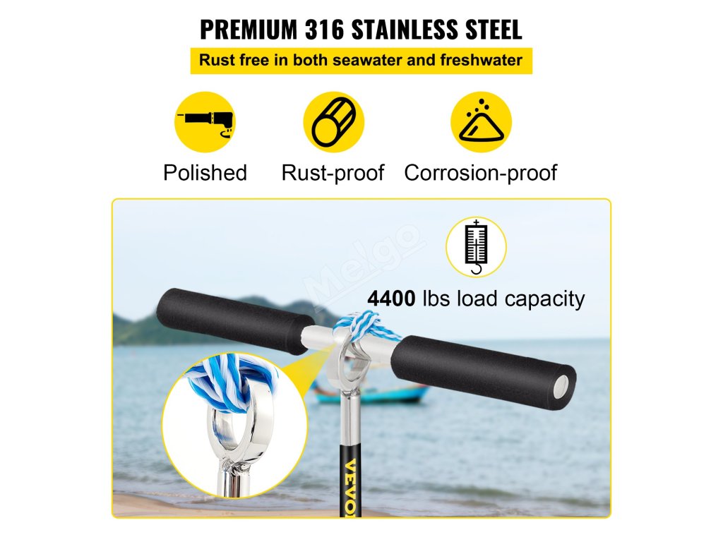 Nerezová ocel 316 je odolná proti korozi a rzi. Nebojte se kotvit v mělké vodě, mořské vodě nebo sladké vodě.