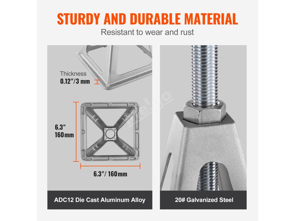 Naše stojany na zvedáky pro obytná vozidla jsou vyrobeny z odolného tlakově litého hliníku ADC12 a jsou odolné proti korozi a rzi. Na šrouby je použita 20# pozinkovaná ocel, která odolává nárazům, opotřebení a má delší životnost.