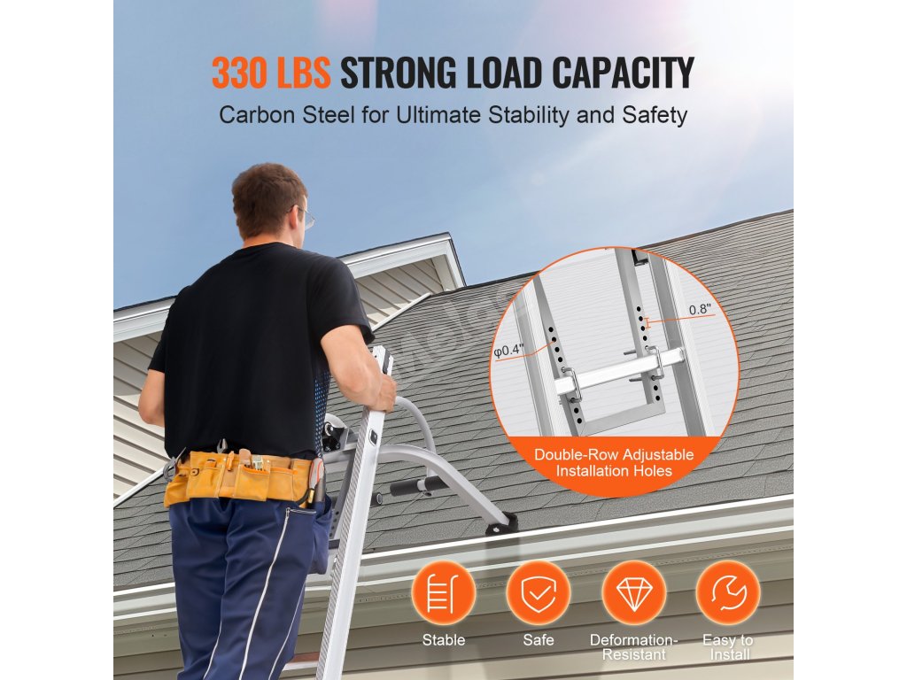Náš stabilizátor žebříku je vyroben z vysoce pevné uhlíkové oceli, která zaručuje stabilitu a bezpečnost! S nosností 330 kg unese váhu většiny dospělých osob. Je kompatibilní s různými tvary žebříků a vhodný pro více scénářů, což vám usnadní práci ve výškách!